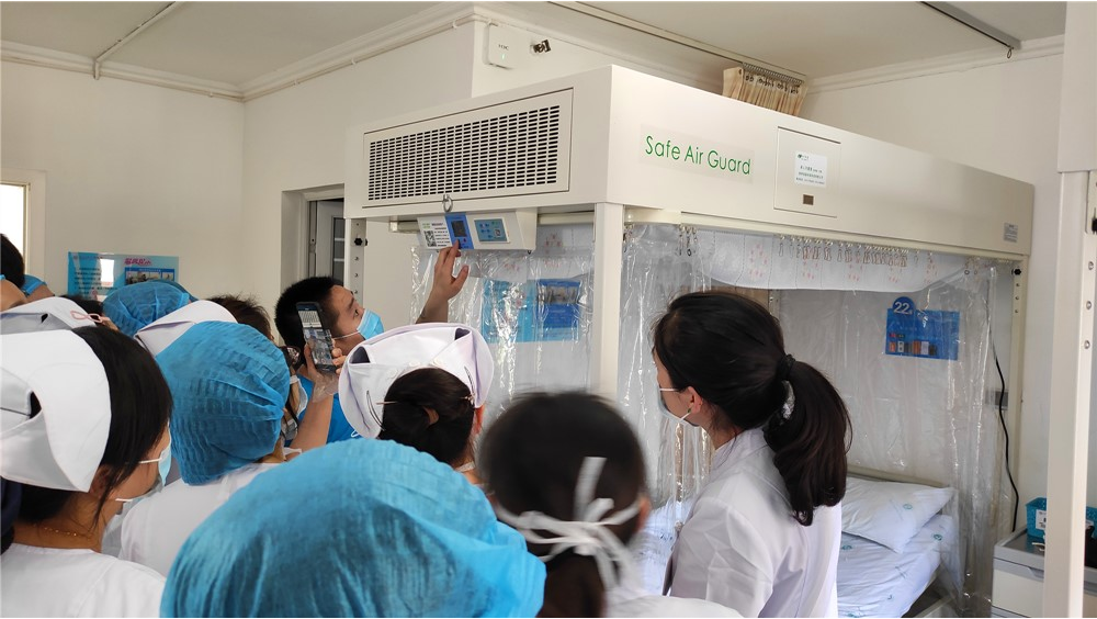 為了減少實體瘤患者放化療后骨髓抑制感染風險及血液病患者感染風險,我科于近日購買四臺層流無菌床,目前分別置放于城北病區腫瘤血液科及總院風濕免疫科,為了更好的操作層流無菌床及了解相關注意事項,6月3日,我科在腫瘤血液科病房對醫護人員進行了培訓。